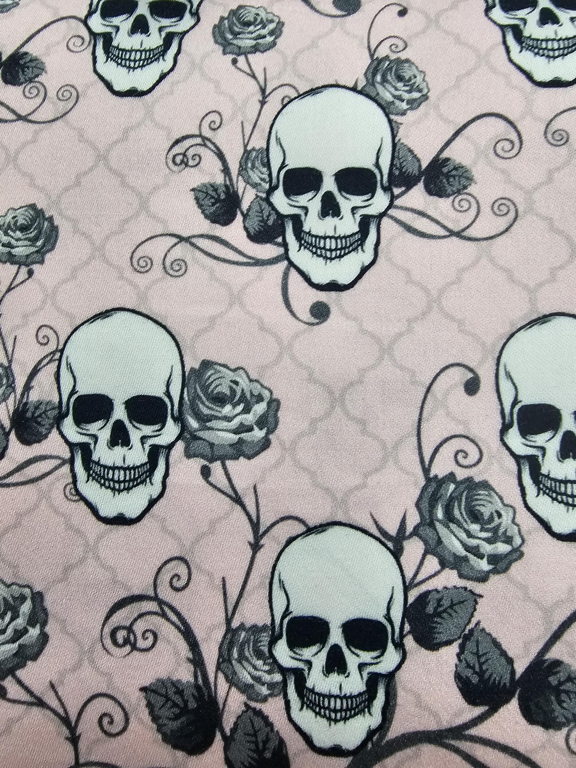 Baumwolle mit Skulls und Rosen in Rosa
